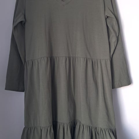 Kuvan muk uutta vastaava vihreä mekko, takana rypytys