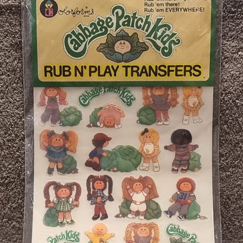 Kaalimaan kakarat siirtotarrapakkaus vuodelta 1983. Avaamaton, käyttämätön. Gabage patch kids. Rub n' play transfers. Voi noutaa tai vähintään 5 euron ostokset voin postittaa matkahuollon pakettina. Katsothan myös muut ilmoitukseni.