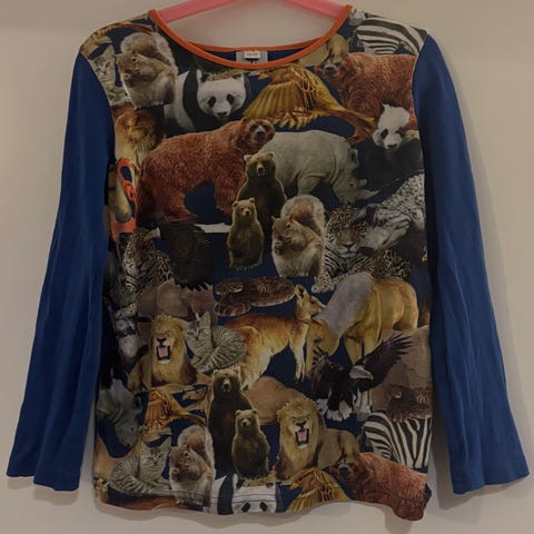 Hyväkuntoinen lasten sininen kung fu aiheinen paita. Koko: 6-8 vuotiaalle.