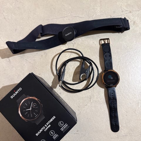 Vähän käytetty Suunto 3 Fitness urheilukello ja johto etsii uutta kotia. Ei enää uusi mutta naarmuton ja siisti