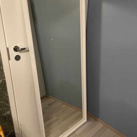 IKEA peili, suorakulmainen muoto, valkoinen kehys. Sopii seinälle ripustettavaksi ja tilan visuaalisen laajentamisen tueksi.