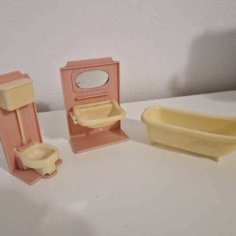 Myydään nukkekodin vintage kalusteet, pöytä ja tuoli sekä kaapit.