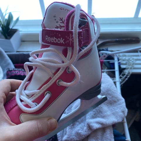 Käytetyt Reebok-merkkiset luistimet. Koko 29. Kuvassa näkyvät kolhut,muuten hyväkuntoiset.