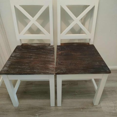 Pöydässä halkeama jonka voi korjata liimalla ja puristimella mutta ei haittaa käyttöä.