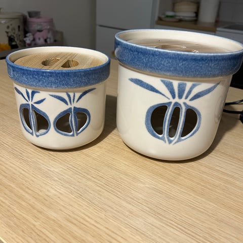 Myydään siisti Pentikin sipulipurkki. Halkaisija 17 cm ja korkeus 16 cm.