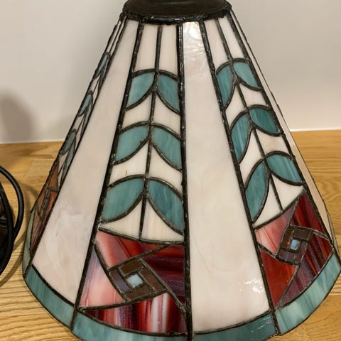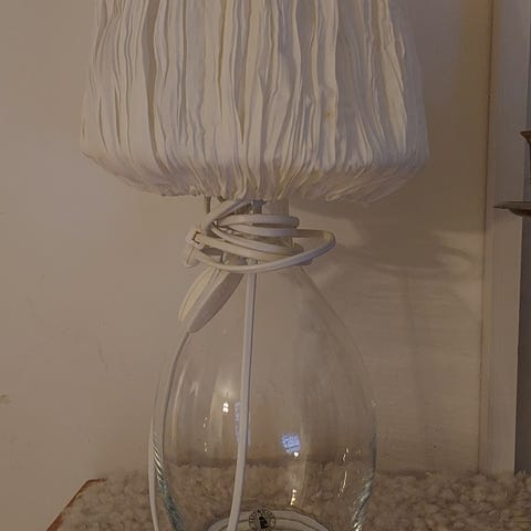 Korkeus n. 51 cm ja levein kohta n. 26cm. N. 3,5m johto. Yhdellä puolella lasissa pieni halkeama.