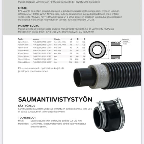 MAALÄMPÖPUTKI UPONOR 40X2,4/68 ERISTETTY PN10. Mm Kastellin paketissa pumpun ja kaivon välinen putki kuuluu tilaajalle.