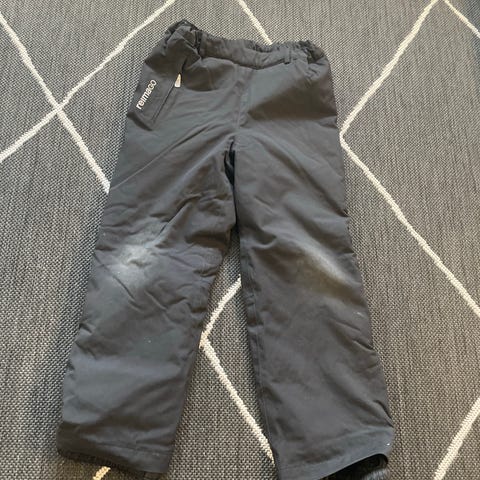 Mustat Reima Tec toppahousut, koko 128 cm. Polvissa kulumaa, mutta ehjät, hyväkuntoiset housut. Vyötäröllä kuminauha kiristettävissä napeilla. Sivutasku vetoketjulla. Lahkeensuissa tarrakiristys ja sisävuori on nepparilla kiinni lahkeessa.