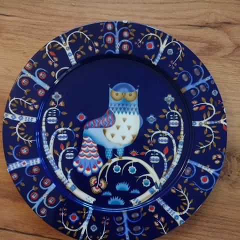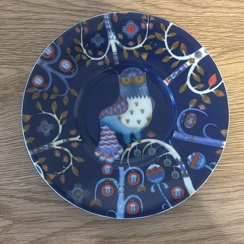 Myydään kaunis Iittala Taika -sarjan pöllöaiheinen pieni lautanen.