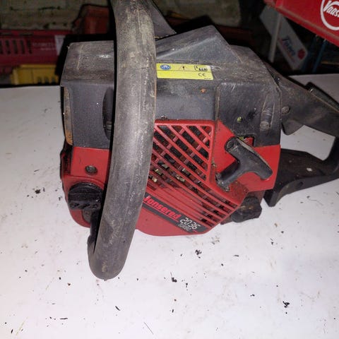 Jonsered CS 2238 S moottorisaha, n. 4 vuotta vanha. Aika vähällä käytöllä ollut, käytetty satunnaisesti polttopuiden tekoon. Toimii ja käy moitteettomasti, vaatii kyllä hieman jäähtyessään ryypyllä kikkailun käynnistyäkseen tai sitten vartin odottelun. Kevyt huolto voisi parantaa tilannetta (tulpan vaihto, polttoaine- ja ilmansuodattimen puhdistus). Helppokäyttöinen, teränkiristys ilman työkaluja pikatoiminnolla.