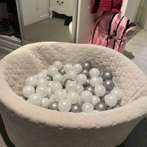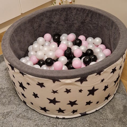 Hyvässä kunnossa oleva pallomeri. Pestävä päällinen. Palloja meidän käyttöön ollut ainakin riittävästi :) koiratalous!