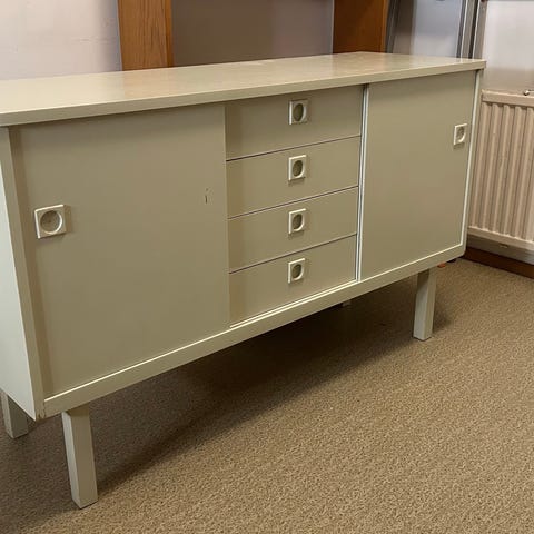 Myydään vintage senkki, johon vaihdettu jaloiksi mustat pinnijalat. Lukitusmekanismi avaimella, ei kolhuja tai kulumaa pinnoissa.