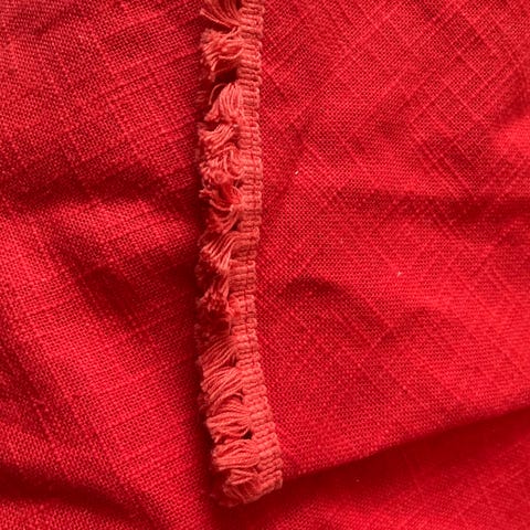 Pihlajanmarja kuvioinen pyöreä pöytäliina, halkaisija 160 cm. Nouto Espoon Olarista.