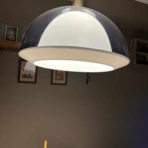 Eero Aarnion Vaasi-kattovalaisin. Ulompi kupu kirkas ja sisempi valkoista muovia. Lampun kanta E27, yksi yhteensopiva led-lamppu tulee mukaan.