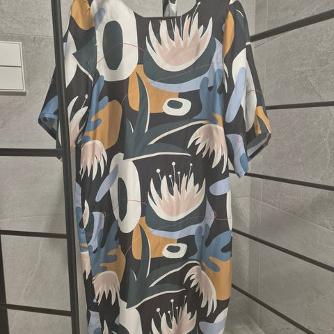 Ivana upea oranssikuvioinen samettimekko mesh-hihoilla ja selkäpuolelta. Erittäin hyvä kunto, koko 38, noin s-L kokoiselle, joustaa. 66€ posteineen.