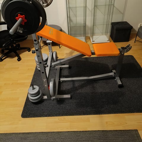 Haussa painonnostopenkki, jossa oli jalan ojennuslaite samassa. Kuvassa esimerkki minkälaista olen etsimässä.