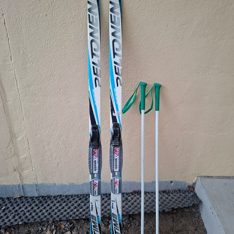 Myydään hyväkuintoiset Peltonen 120cm sukset ja sauvat