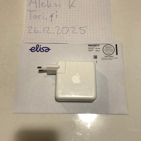 Apple MacBook virtalähde USB-C-kaapelilla, väri valkoinen. Soveltuu MacBook-laitteille virransyöttöön. Virtalähteen mukana tulee USB-C-kaapeli.
