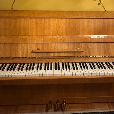 Valkoinen pystypiano, jossa on 88 kosketinta ja kolme poljinta. Sopii musiikin harjoitteluun ja esiintymiseen kotikäytössä.