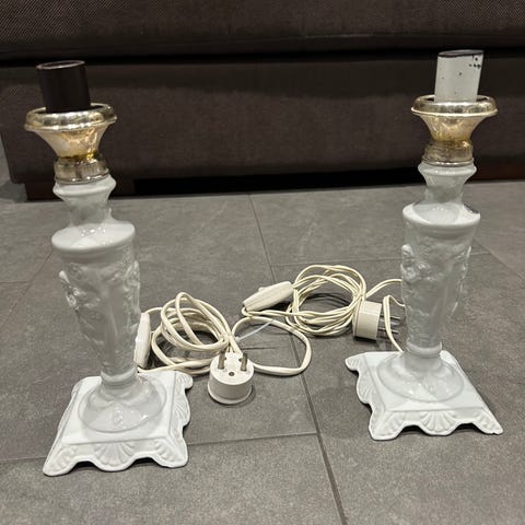 Kaksi vanhaa harvinaista posliinista ulkovaloa lasikuupilla. Sähköiset osat todella hyväkuntoiset. Kuvista selviää yksityiskohdat. Hinta 125€ kpl