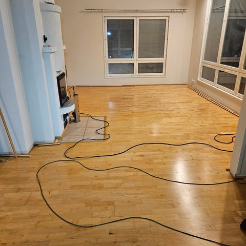 Myydään olohuoneen parketti. Tummansävyinen.