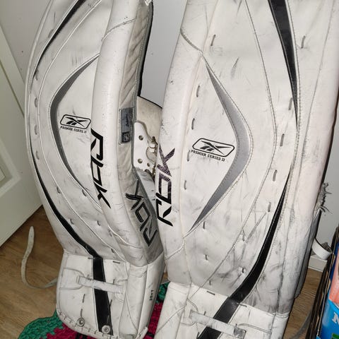 31 tuumaiset polvisuojat jääkiekko maalivahdille, erittäin hyvä kuntoiset, voisi sanoa uudenveroiset.