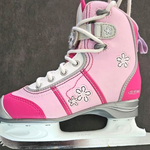 Myydään tyttöjen vaaleanpunaiset kukkaakuviolliset luistimet (CCM, koko 31). Sisämitta raksamitalla mitattuna 19-20 cm.