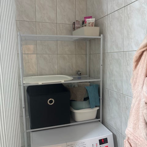 Kylpyhuoneen kaappi / hylly pyykeille, korit mukana, harmaa