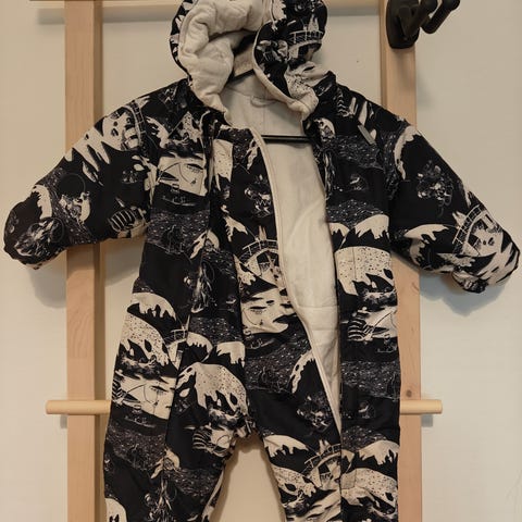 Aivan ihana muumi-kuosi. Kaksi vetoketjua, joka tekee pukemisesta helppoa. Käännettävät käsitöppöset (katso kuvista). Reissussa ollessa vaipanvaihto huoletonta haaravetoketjun avulla (katso kuvista). Lahkeissa sekä napit-että kumilenkit.🩷 Koko 68/74