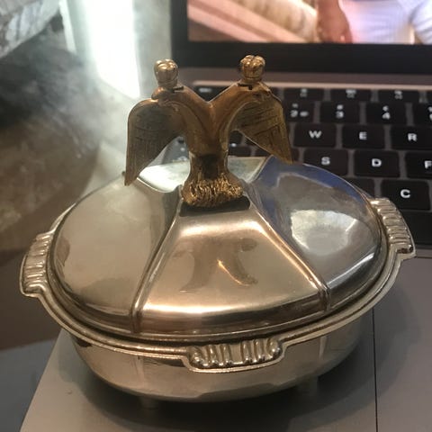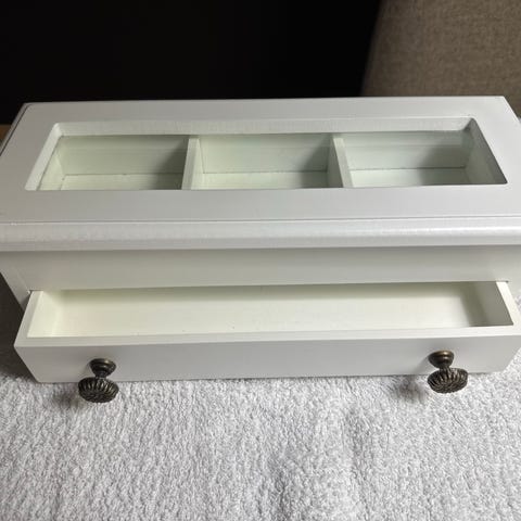 Noin 6,5x12x15 cm. Sisäosa 4,5x10x14 cm. Korurasia. Saranat kunnossa. Pinnassa kulumia. Postitus (8e) tai haku. Kulkee metrolla keskustaan saakka.