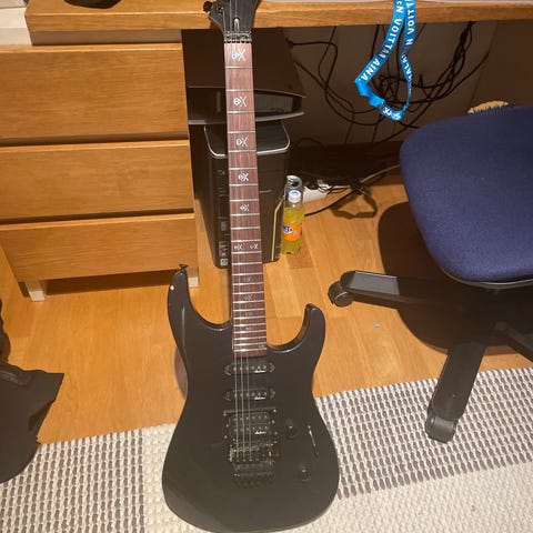 Jackson sähkökitarat mustalla värillä. Kitara on valmistettu Kiinassa ja siinä on Jacksonin logo. Sähkökitaran muoto on V-tyylinen.