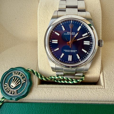 Huippukuntoinen keväällä 2019 tuotannosta poistunut, viimeisimmäksi kokomustaksi täysteräsmalliksi jäänyt GMT-Master II. Todella haluttu GMT-kaksoisaikakomplikaatiolla varustettu sportti-Rolex, jossa myös kykloopilla varustettu selkeälukuinen päivyri. Erinomaisen ranneistuvuuden tarjoaa todella näyttävä, kiiltävin keskipaloin sekä EasyLink -pikasäädöllä varustettu kolmirivinen oyster-ranneke. Teräksisen takakannen sisällä tikittää tarkasti Rolex cal. 3186 -automaattikoneisto. Kellon paperit on päivätty 07/2012 ja se on huollettu 12/2025 – huoltotakuu on voimassa 12/2026 asti. Mukaan kaikki alkuperäiset paperit, molemmat hang tagit, kaikki rannekkeen palat, molemmat laatikot sekä huoltotakuukortti + PDF-huoltotosite viimeisimmästä huollosta. Tästä keräilytason kunnossa oleva ja erittäin haluttu GMT Master II arkeen ja juhlaan!