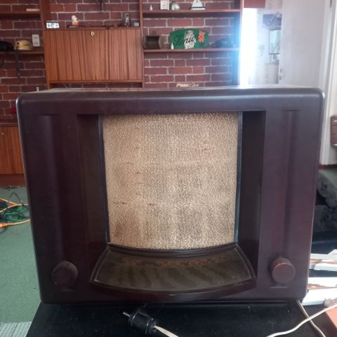 Vintage putkiradio ja pieni kaappi