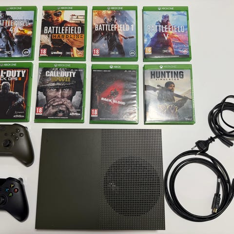 Myydään Xbox One S 1TB + pelit ja tarvikkeet – erinomainen kunto! Myynnissä täydellinen Xbox One S -paketti harrastajalle tai aloittelevalle pelaajalle. Konsoli on käytetty alle vuoden, täysin toimintakunnossa eikä siinä ole vikoja.Pakettiin sisältyy:Xbox One S 1TB musta konsoli (alkuperäinen pakkaus)Ohjain (langaton, uusi akku)
