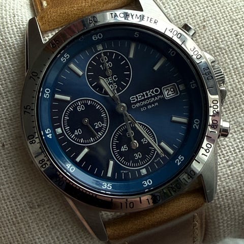 Seiko unisex rannekello, jossa on musta kellotaulu ja ruskea nahkaranneke. Kello sisältää päivyri- ja viikonpäivänäytön. Kellon kuori on valmistettu ruostumattomasta teräksestä ja se sopii sekä miehille että naisille.