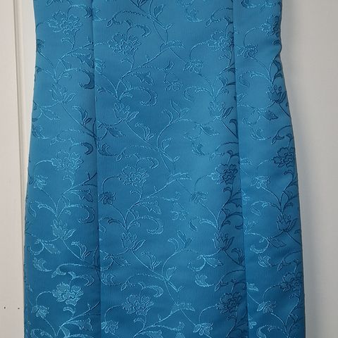 Kaunis, pitkä turkoosi /sinivihreä /meren sininen juhlamekko. Koko 36. Kyljessä piilovetoketju. Alushame jotain liukasta materiaalia, pintamekko ohutta ja kauniisti laskeutuvaa. Vahvistettu /topattu rintamus.