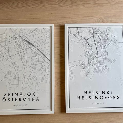 Kaverini Designsin Vantaan Tikkurilaa esittävä juliste kehystettynä. Kehyksen mitat noin 43cm x 33cm.