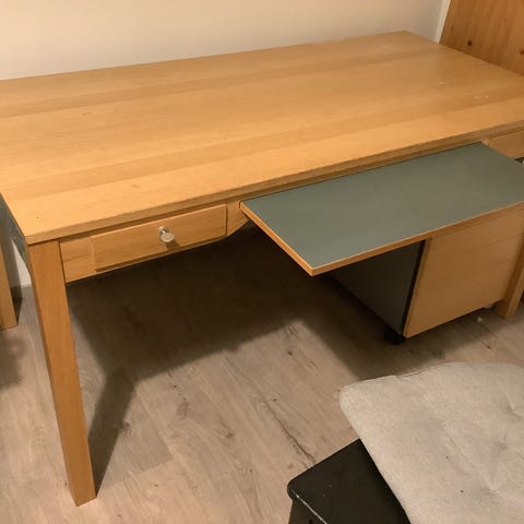 Hyvässä kunnossa oleva ikeasta ostettu työpöytä.