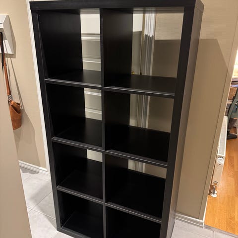 ANNETAAN ikean kallax hylly, kuvissa näkyy hyllyn kohtalaiset kohdat.