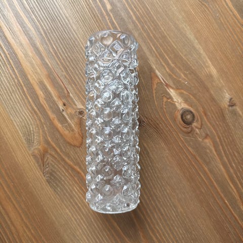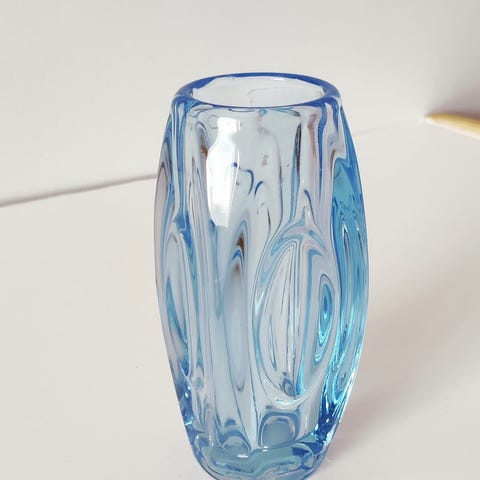 Jan Schmidin 1960 luvulla Sklo Unionille suunnittelema taidelasimaljakko. Painava.