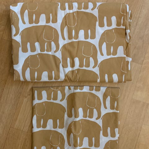 Finlaysonin elefantti vapaa parivuoteen pussilakanasetti. Pari kertaa käytetty mutta ei ollutkaan väriltään mieluisa. Pussilakana + 2 tyynynpäällistä.