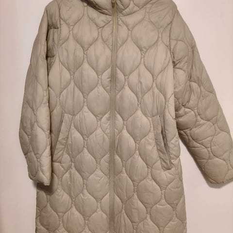 Myydään erittäin vähällä käytöllä ollut naisten pitkä toppatakki koko L, väri musta. Vetoketju avattavissa myös alaosasta. Vinot tilavat taskut edessä.