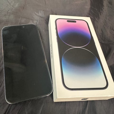 Apple iPhone 14 Pro älypuhelin, 256 gigatavua tallennustilaa. Laite on varustettu useilla kameroilla ja toimii iOS-käyttöjärjestelmällä. Väri ja muut fyysiset ominaisuudet eivät ole tarkasti tiedossa kuvien perusteella.