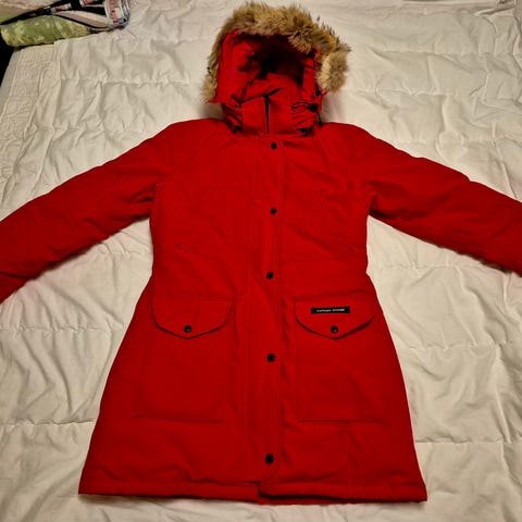 Canada Goose Talvitakki naisten koko S, väriltään musta. Takki on valmistettu untuvasta, mikä tarjoaa lämpöä kylmiin olosuhteisiin. Saumoissa merkillä tyypillistä värikulumaa, yleisilme kuitenkin perus siisti.