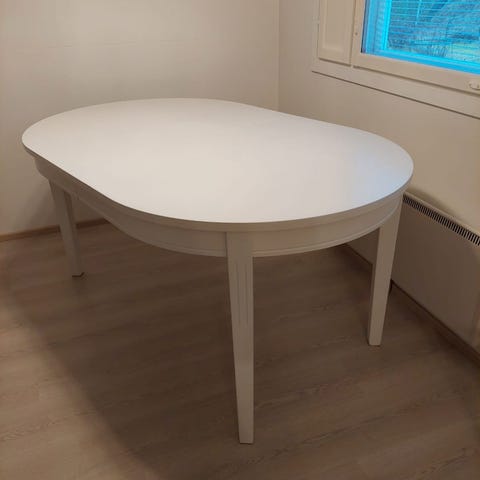 Tästä pienellä vaivalla erittäin hyvä ja tukeva pöytä. Pinta vaatii uudelleen käsittelyn mutta muuten hyvässä kunnossa. Ollut lämpimässä varastossa säilytyksessä. Pituus 210 cm ja leveys 100 cm. Autolla pääsee ihan viereen, ei portaita.