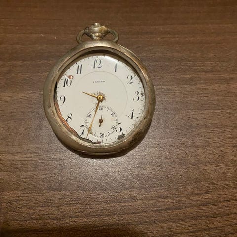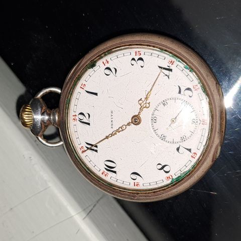 Zenith taskukello hopeaa. Ostettu 21/5 41 on sellainen kaiverrus.