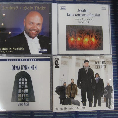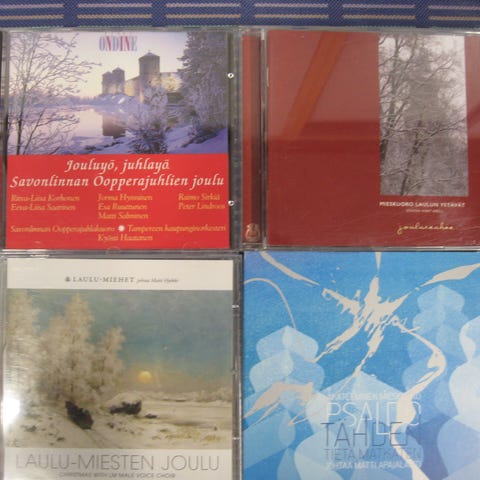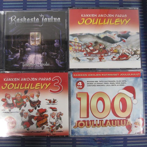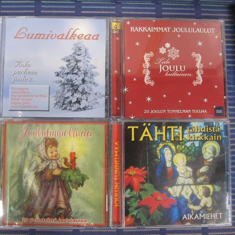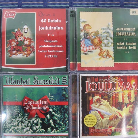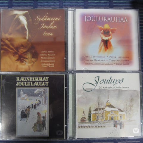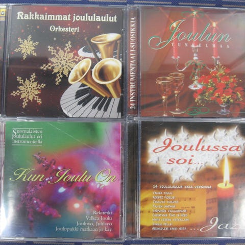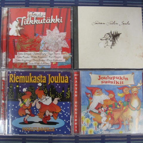 Myydään jouluisia cd-levyjä 3,00 euron kappale. Kaikki cd:t kuunneltu ja todettu toimiviksi. Cd:ssä voi olla naarmuja & kansipapereissa jälkiä/omistuskirjoituksia, mutta cd-kotelot ovat ehjät. Postituskulut ostajalle ja noutokin sovittavissa.