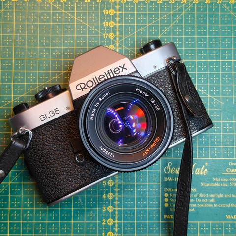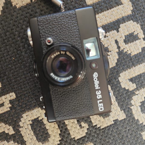 Rollei A 110 film camera with 23mm Tessar lens f2.8. Made in Germany