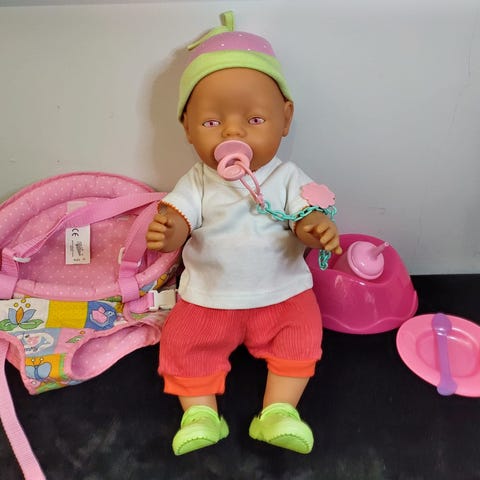 Siisti ja ehjä nukke Baby Born, kokonaan muovinen, pissaava, sulkeutuvat silmät, ripset ovat tallella. On käytön jälkiä, kuva 3. Kuvanmukainen vaatteet. Nouto tai postitus