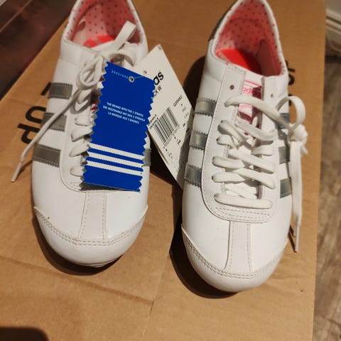 Klassisen malliset Adidaksen juoksutossut. Kokomerkintä 391/3. Mustalla pohjalla kultaiset yksityiskohdat, valkoiset pohjat. Uudet / käyttämättömät, laatikon saa halutessaan mukaan. Joko nouto Kalasatamasta tai postikulut ostajalle.